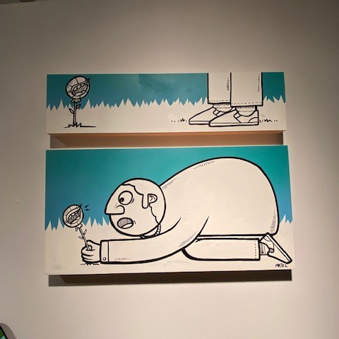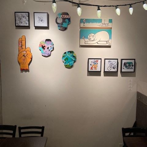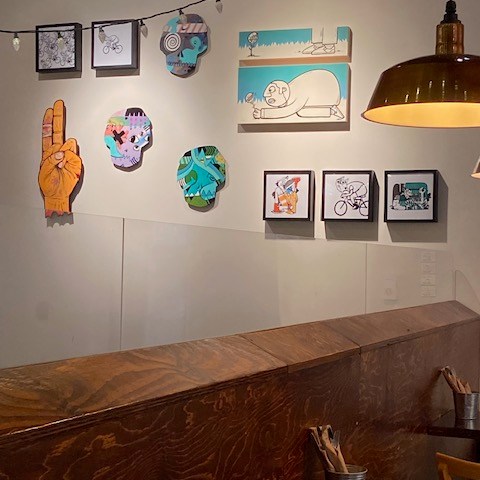 I had the opportunity to put my latest pieces in a cool restaurant/bar/shop (Deux22) in downtown Quebec city. It’s a mini solo exhibition filled with several nature related canvases. Now you might catch the link with the title Certifié Bio! / Organic certified!