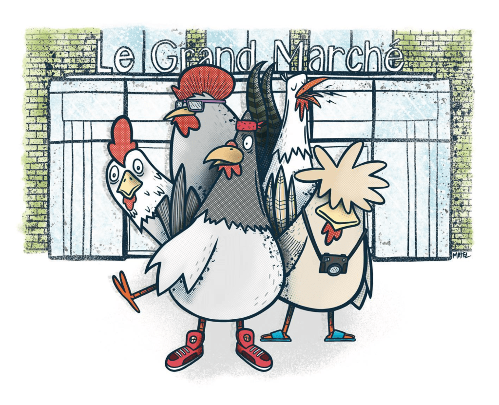 Here is an illustration I just made for Le Grand Marché de Québec. Each year they host a special event where they present various races of chickens and all the products surrounding it. This time they wanted something more fun and less serious, so I decided to build up this crew of chicken tourists in visit. Thanks for the trust!