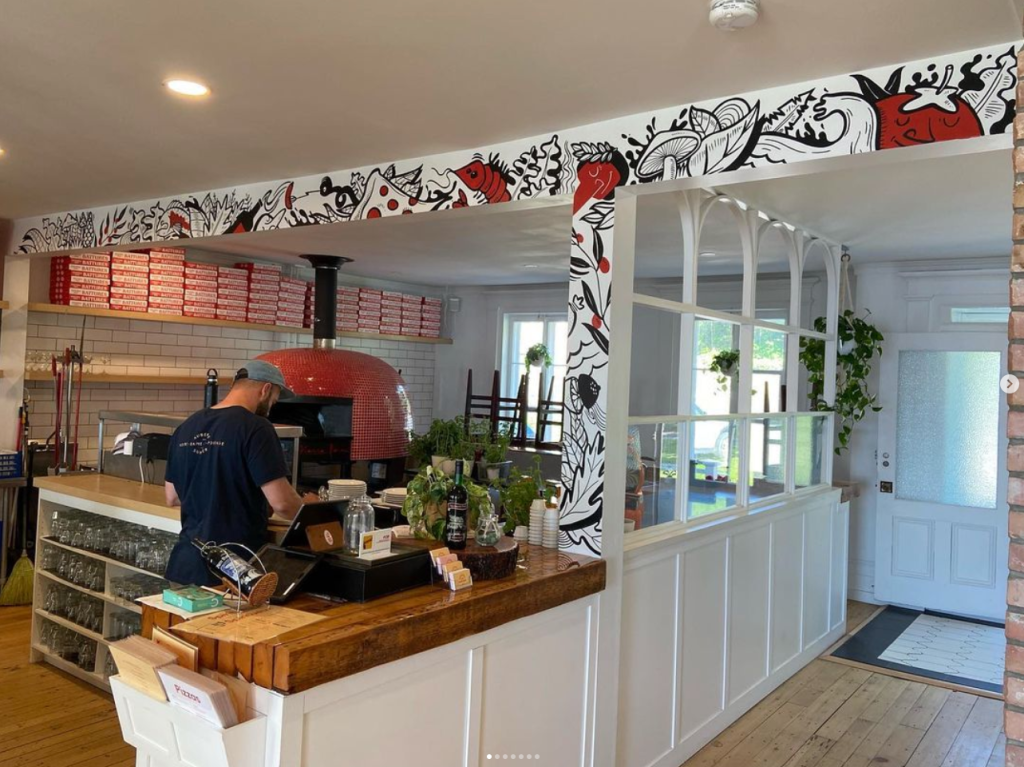 En juin j’ai été réinvité par mon ami Frank April à faire de nouveaux ajouts dans sa super pizzeria à Notre-Dame du Portage. J’ai créé des interventions au bar, sur les poutres et du côté Crèmerie. Merci pour la confiance!!! Arrêtez si vous passez dans le coin ça vaut le coup!