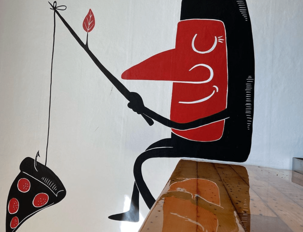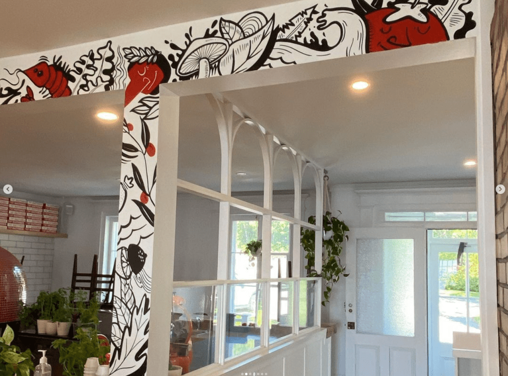 This june I got reinvited by my friend Frank April to make some new additions on the walls of his super pizzeria in Notre-Dame du Portage. I did interventions at the bar, on the columns and in the ice cream shop. Thanks for the trust!!! Stop by if you are in the area, it’s worth it!