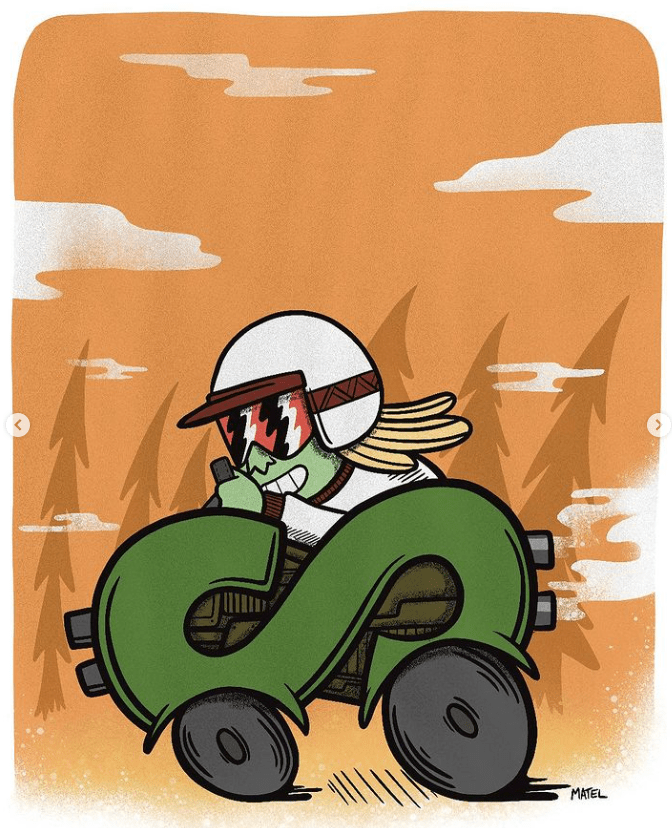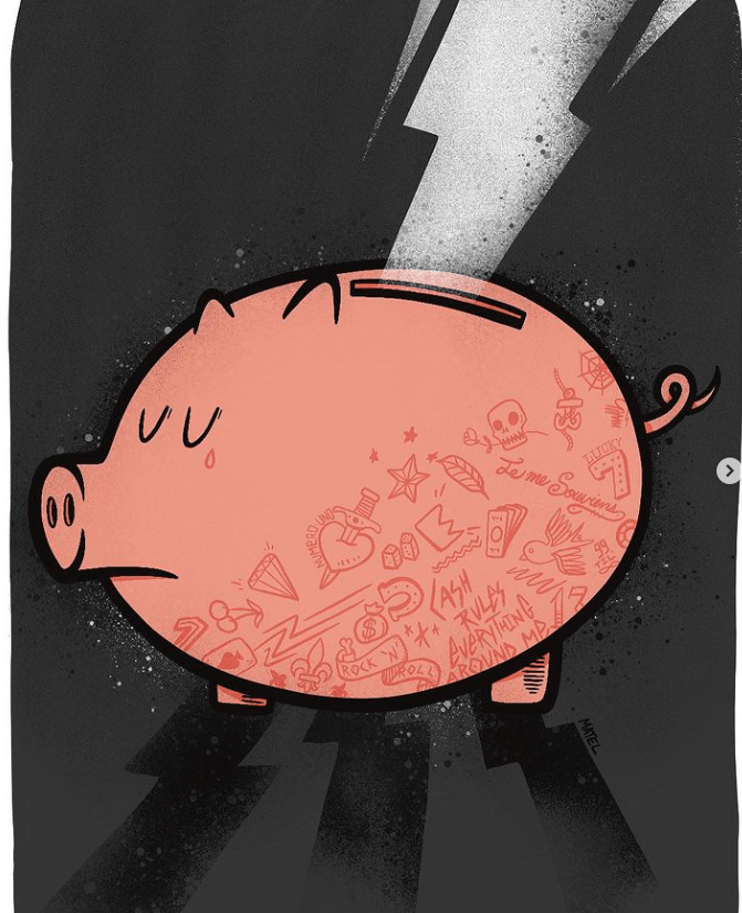 I ended up with a couple of images. The piggy gets bigger, money scares me, money on top of the world, money drive…