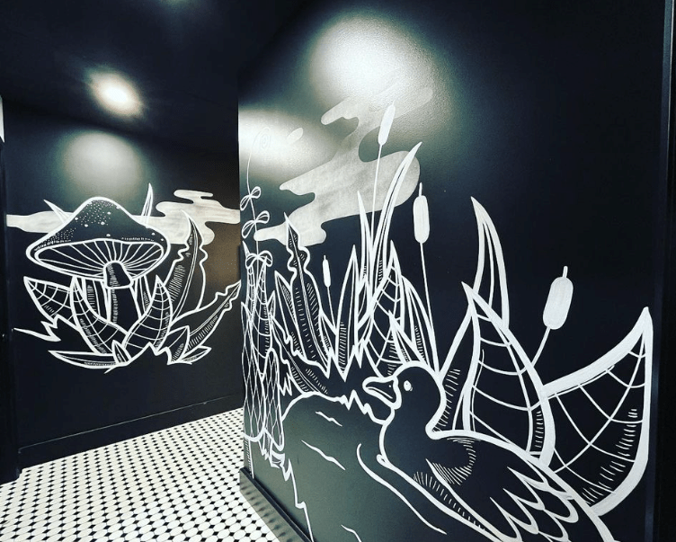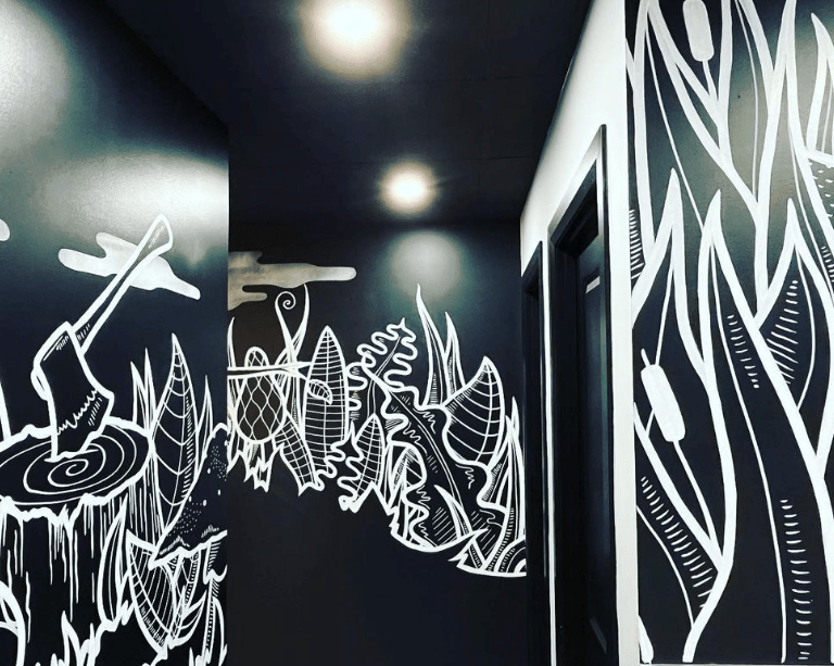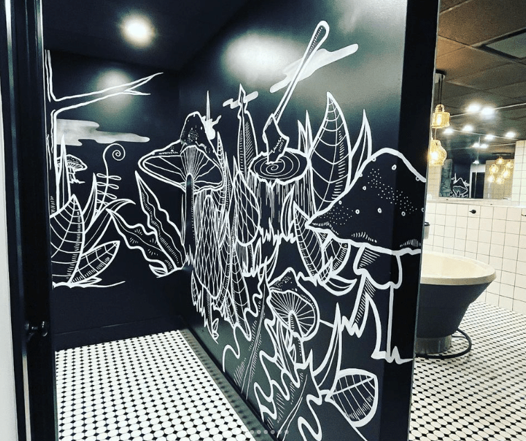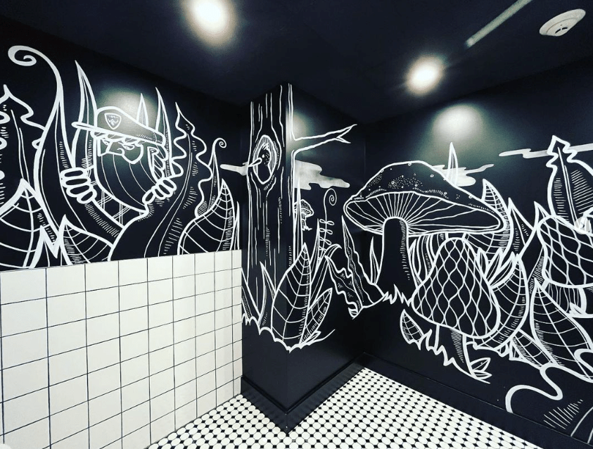 Locked inside the place, I began to paint white lines. An immersion in a forest would be the main drive of this project. So I rallied my trees, mushrooms and plant skills and got wild with it! Thanks for the constant support Nick and Marie-Ève!