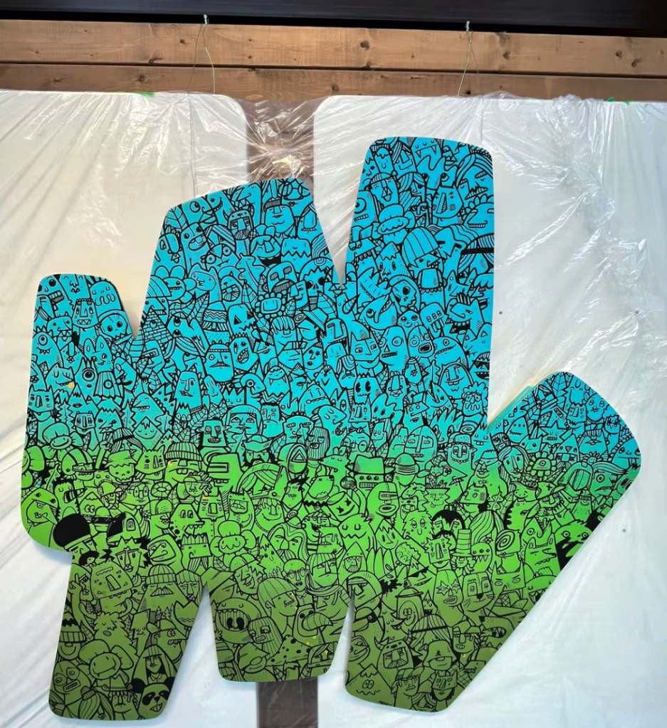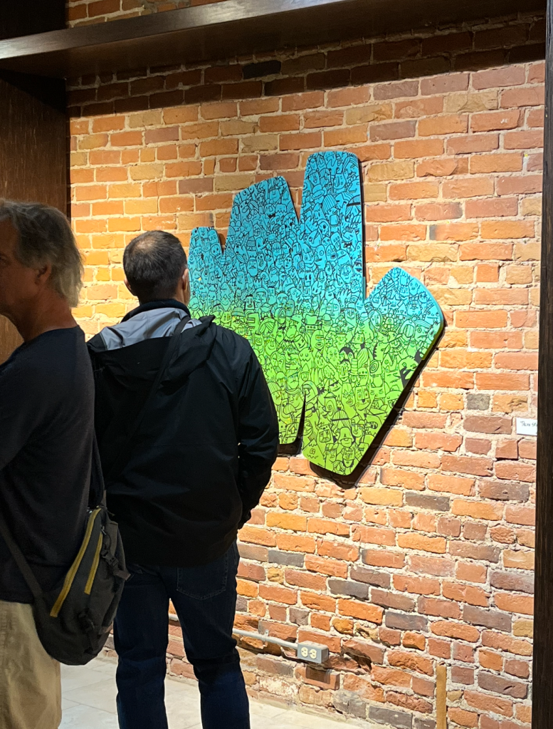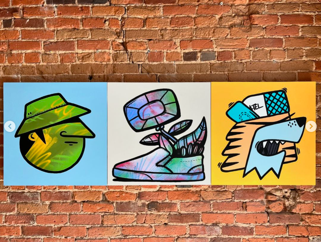 I had to chance to exhibit and live paint along fellow artists at this year SRXP event in downtown Quebec. Invited by Bleufeu, I had to create during three evenings a canvas in front of the public. Plus some canvas exhibited throughout the event. Nice experience and chats with several persons. The result of the painting contains 263 characters, all freestyled one after the other.