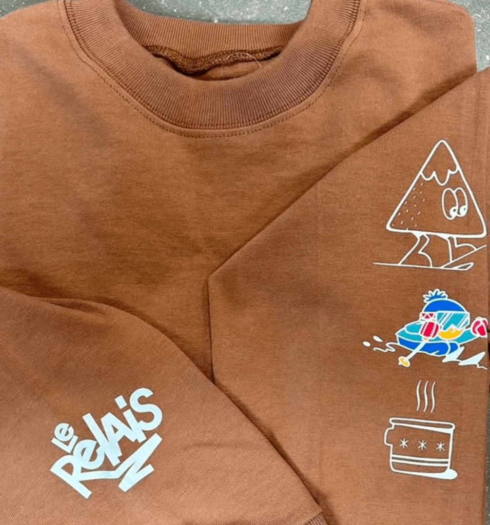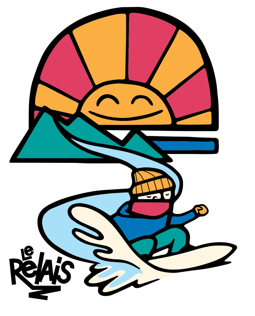 Following the painting of the wall in Le Relais, I got to design the merch and revamp a signature for the season. All designs are based on the wall art and applied to stickers, beanies and clothes. This is a nice addition to a cool project.
