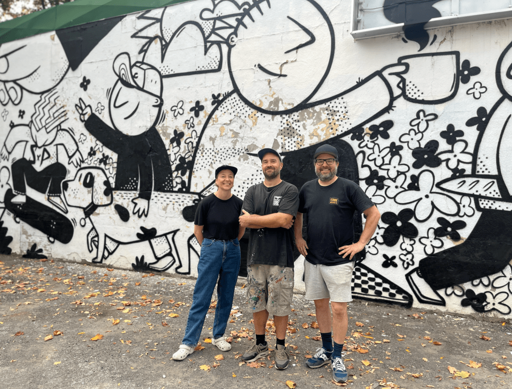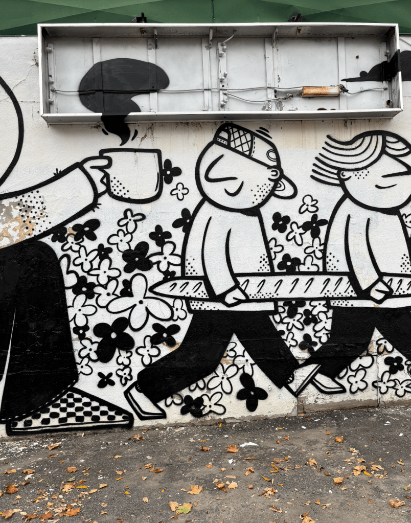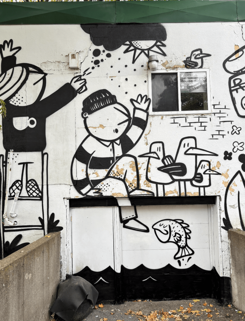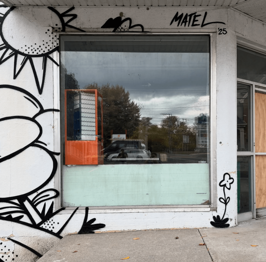 Some fine folks invited me in Ste-Dorothée, Montréal, to paint the abandoned wall next to their café. We wanted to reflect the neighborhood and put some paint on this dying wall! Here is the black and white mash up we created!